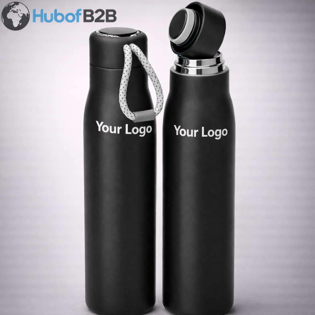 Durable black stainless steel bottle designed to keep drinks hot or cold for hours, perfect for daily use, travel, or outdoor activities.
